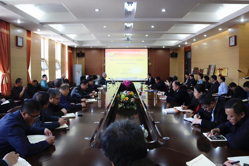 按照開展黨史學(xué)習(xí)教育的有關(guān)要求和學(xué)院黨史學(xué)習(xí)教育及實踐活動工作總體安排,2021年4月7日下午,我院邀請自治區(qū)黨委黨史學(xué)習(xí)教育第十五巡回指導(dǎo)組成員、自治區(qū)黨史學(xué)習(xí)教育宣講團成員、內(nèi)蒙古工業(yè)大學(xué)馬克思主義學(xué)院教授閆安來院作黨史學(xué)習(xí)教育專題宣講。學(xué)院領(lǐng)導(dǎo)孫智憑、白托婭、董平、武鈞,院黨史學(xué)習(xí)教育領(lǐng)導(dǎo)小組成員、各工作組組長、副組長,副處級以上干部,基層黨支部書記參加。學(xué)院黨史學(xué)習(xí)教育領(lǐng)導(dǎo)小組辦公室副主任、黨委宣傳部部長高飛主持。