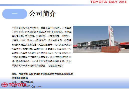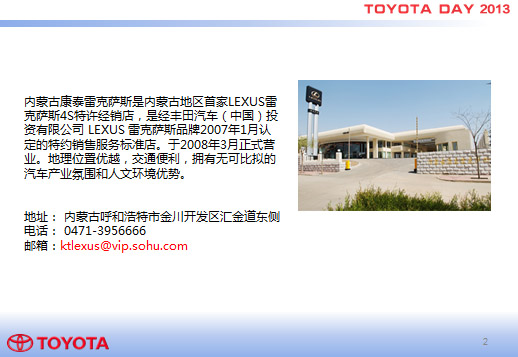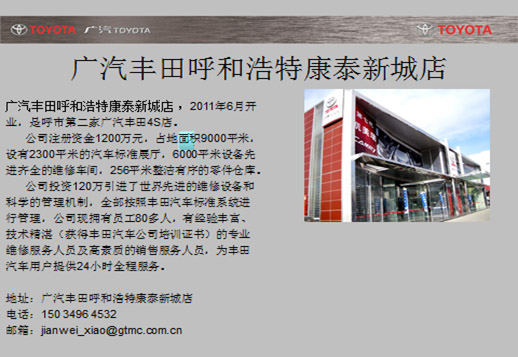 呼和浩特康泰豐田汽車銷售服務有限公司 |