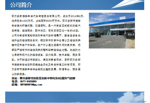 鄂爾多斯康泰豐田汽車銷售服務有限公司 |