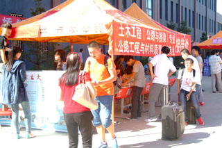 學(xué)院2013年錄取新生1002名,其中本科281名,高職721名。為迎接新生報(bào)到,我院統(tǒng)一設(shè)置了班主任接待處、家長休息處、學(xué)生服務(wù)站;在火車站設(shè)立了新生接站點(diǎn),安排校車專門接送新生和家長。確保新生及家長在到達(dá)學(xué)校的第一刻就能以最快的速度到達(dá)學(xué)院的報(bào)到點(diǎn)。各班班主任到崗到位,熱情地為每一個(gè)新生報(bào)名,耐心地指導(dǎo)新生辦理手續(xù),并細(xì)致地查驗(yàn)錄取通知書、身份證等材料和證件。在學(xué)院的統(tǒng)一協(xié)調(diào)組織下,學(xué)院各相關(guān)部門密切配合,各項(xiàng)迎新工作進(jìn)展順利。