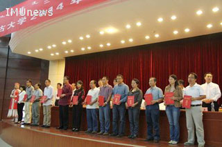 內(nèi)蒙古大學(xué)2013年校級(jí)教學(xué)成果一等獎(jiǎng)的獲獎(jiǎng)代表上臺(tái)領(lǐng)獎(jiǎng) |