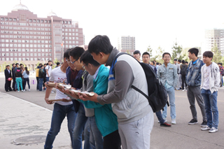 開幕式結束后參會人員和學生舉行了條幅簽名儀式,各系學生組隊參加了心理趣味活動。