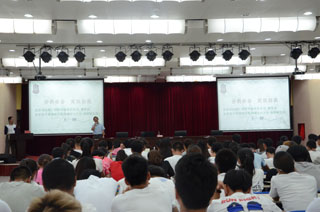 學工處副處長、就業(yè)指導中心主任季秋成主持講座 |