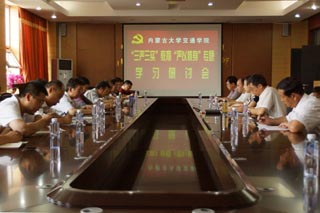 為深入貫徹自治區(qū)黨委組織部《關(guān)于認真落實“四個一”要求深入扎實開展專題學(xué)習(xí)研討的通知》(內(nèi)組通字〔2015〕28號)有關(guān)精神,筑牢“三嚴三實”思想根基、增強全校黨員干部思想自覺性和行動自覺性,7月10日下午,交通樓A439會議室,圍繞“嚴以修身,加強黨性修養(yǎng),堅定理想信念,把牢思想和行動的‘總開關(guān)’”主題,我院召開“三嚴三實”教育“嚴以修身”專題學(xué)習(xí)研討會。
