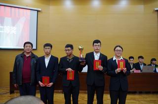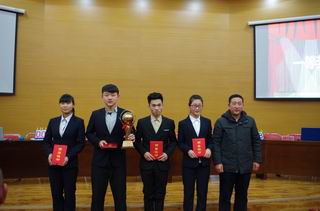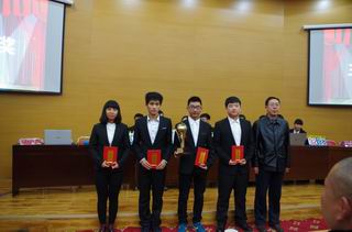 圖為丁永欽處長為決賽第二名機(jī)械工程系代表隊頒獎 |