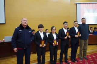 圖左起依次為保衛(wèi)處(南區(qū))蘇赫科長、后勤保衛(wèi)處丁永欽處長、工程管理系黨總支鐘懷軍書記、學(xué)工處高飛處長、保衛(wèi)科蘭波副科長、工程管理系學(xué)工辦閆琴主任 |