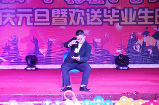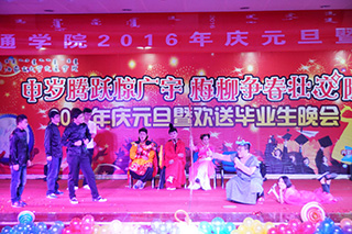 本場(chǎng)晚會(huì)共分三個(gè)篇章,主題突出,精彩紛呈。開(kāi)場(chǎng)舞《賽拜努》、歌曲《站在草原望北京》、相聲《我要畢業(yè)了》、朗誦《不悔夢(mèng)歸處,只恨太匆匆》以及動(dòng)感的街舞無(wú)不昭示著青春的活力與留戀的追憶,由師生共同錄制的視頻《畢業(yè)獻(xiàn)詞》將晚會(huì)第一篇章“憶往昔,風(fēng)采依舊”推向高潮。歌曲《漫步人生路之夜來(lái)香》將晚會(huì)帶入第二篇章“望今日,風(fēng)華正茂”,神奇的魔術(shù)表演、悠揚(yáng)的蒙語(yǔ)歌曲《你美麗的眼神》、激情四射的舞蹈《Up down&Shake it》讓全場(chǎng)觀眾熱血沸騰。一曲《在我生命中的每一天》拉開(kāi)第三篇章“展未來(lái),豪情必勝”,小品《我是演員》、舞蹈《青春的告白》、合唱《明天會(huì)更好》為畢業(yè)生們送上了美好祝福。晚會(huì)在老師們傾情奉獻(xiàn)的《歌曲串燒》中圓滿結(jié)束。