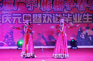 柴金義院長(zhǎng)致新年賀詞 領(lǐng)導(dǎo)與晚會(huì)演職人員合影 左為常務(wù)副院長(zhǎng)董平,右為副院長(zhǎng)武鈞 右為黨委副書(shū)記、紀(jì)委書(shū)記白托婭,左為黨委委員趙志蒙 開(kāi)場(chǎng)舞《蒙古族舞蹈:賽白努》 晚會(huì)主持人 部門(mén)領(lǐng)導(dǎo)、系部領(lǐng)導(dǎo)及學(xué)工辦主任、班主任 教師們傾情表演《歌曲串燒》 歌伴舞表演《曹操》 魔術(shù)表演 歌曲《站在草原望北京》 歌曲《漫步人生路之夜來(lái)香》 舞蹈《up down & shake it》 朗誦《不悔夢(mèng)歸處 只恨太匆匆》 小品《我是演員》 相聲《我要畢業(yè)了》 動(dòng)感街舞表演 舞蹈《青春的告白》