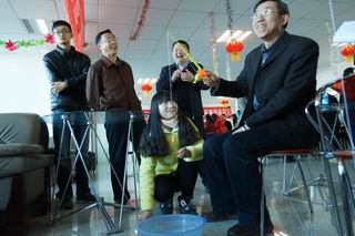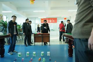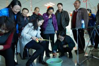 活動現(xiàn)場張燈結(jié)彩,一片歡聲笑語。金鉤釣魚、好運飛鏢、幸福圈套、隔桌吹蠟、快樂乒乓夾、蒙眼摸鼻等六個貼近生活、充滿趣味的游藝項目,給廣大教職工奉獻了一頓豐富多彩的娛樂大餐。游藝中,有比技巧的,有比準勁的,有比運氣的……大家個個勁頭十足,一改往日的嚴謹,沉醉在游戲帶來的樂趣之中,盡情釋放著平日工作的壓力,盡情享受著游戲活動帶來的快樂,一年以來教書育人的辛勞在這一刻全部隨著2015年蕩滌而去,新一年熱火朝天的干勁油然而生。