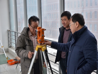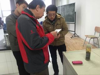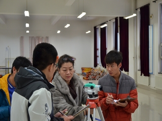 圖為測量工考評員在認(rèn)真審核儀器與學(xué)生記錄數(shù)據(jù) |