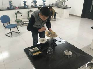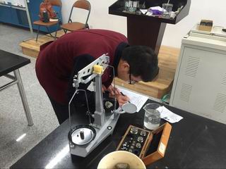 圖為建材試驗工實操考核現(xiàn)場學(xué)生正在細(xì)心做試驗 |