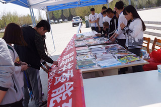 星星之火,可以燎原;點(diǎn)點(diǎn)知識,充實(shí)人生。4月23日至26日,圖書館樓前人頭攢動,醒目的宣傳標(biāo)語、宣傳展板和圖書展臺時(shí)刻提醒著讀者多讀書、讀好書、會讀書,讓更多的師生參與閱讀,讓書香飄滿校園。