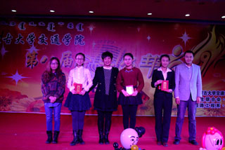 為了進(jìn)一步豐富校園文化生活,提高同學(xué)們的藝術(shù)修養(yǎng)和主持魅力,我院特此舉辦金話筒主持人大賽。江山輩有才人出,經(jīng)過(guò)層層激烈的角逐,共有12名優(yōu)秀的選手脫穎而出進(jìn)入決賽。選手們通過(guò)自我介紹使評(píng)委們對(duì)各自的能力有了初步的了解,接下來(lái)又通過(guò)模擬主持以及才藝展示等環(huán)節(jié)大放異彩。模擬主持環(huán)節(jié),有的選手模仿新聞聯(lián)播的形式,有的借助感動(dòng)中國(guó)的模式進(jìn)行演講,贏得了評(píng)委們的一致好評(píng)。才藝展示環(huán)節(jié),選手們通過(guò)唱歌、跳舞、說(shuō)相聲各不相同的才藝贏得了觀眾們的陣陣掌聲。比賽中,也不乏選手緊張忘詞的情況,每當(dāng)這時(shí),觀眾都會(huì)用熱烈的掌聲為他們加油鼓勁,緊張的氛圍因此而變得溫情滿滿。比賽持續(xù)3個(gè)多小時(shí),最終土木1402班的韓其力格爾通過(guò)在自定義模擬主持環(huán)節(jié)中的優(yōu)異表現(xiàn)勇奪桂冠,路橋53班朱婧、高管30班郭家豪榮獲二等獎(jiǎng),高管30班王雅茜、工管1401班光星宇、質(zhì)檢30班鄧杰獲得三等獎(jiǎng),楊爽、王磊、左文靜、莉娜、那日蘇、陳琛分別獲得優(yōu)秀獎(jiǎng),到場(chǎng)嘉賓為獲獎(jiǎng)學(xué)生頒獎(jiǎng),比賽圓滿結(jié)束。