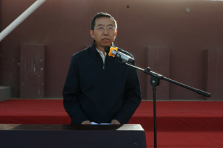 賀其樂圖和史文斌分別代表裁判員、運動員莊嚴(yán)宣誓。  |  | 裁判員代表賀其樂圖宣誓 | 運動員代表史文斌宣誓 |