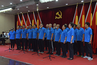 紀念暨表彰大會后,孫智憑書記和化學化工學院退休教師趙薇即興合唱了一首《長江之歌》獻禮黨的生日。各基層黨組織也向偉大的中國共產(chǎn)黨奉獻了精心準備的生日禮物——“愛國、愛黨、愛人民”小合唱和配樂詩朗誦。
