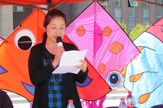 學(xué)生干部主持放飛儀式 | 現(xiàn)場(chǎng)參與放飛的風(fēng)箏愛(ài)好者 |
