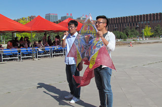 2016年5月16日下午,內(nèi)蒙古大學(xué)交通學(xué)院“手繪夢(mèng)想,放飛希望”自制風(fēng)箏大賽放飛儀式暨現(xiàn)場(chǎng)放飛競(jìng)賽在南校區(qū)主樓廣場(chǎng)舉行。