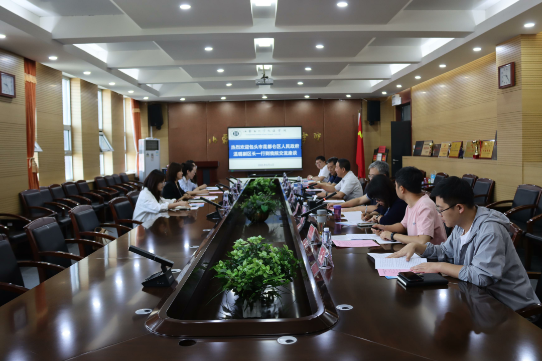 璐副區(qū)長(zhǎng)首先對(duì)學(xué)院的熱情接待表示感謝,并簡(jiǎn)要說(shuō)明了本次調(diào)研的主要目的,詳細(xì)介紹了昆都侖區(qū)的經(jīng)濟(jì)社會(huì)發(fā)展概況、產(chǎn)業(yè)布局及重點(diǎn)人才引進(jìn)政策。希望以此次交流為新起點(diǎn),共同探索產(chǎn)學(xué)研用一體化合作新模式。期待雙方在資源、人才、技術(shù)等方面實(shí)現(xiàn)優(yōu)勢(shì)互補(bǔ),共同助力院地雙方事業(yè)高質(zhì)量發(fā)展高水平提升。